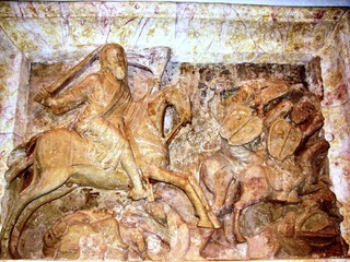 En el siglo XIV, la Orden de Santiago en Cacem, Portugal, añadió por primera vez los sarracenos pisoteados por los cascos de los caballos.